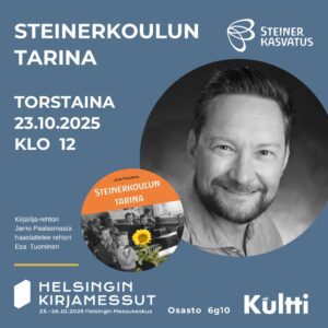 Helsingin kirjamessuilla Kirjailija-rehtori Jarno Paalasmaata haastattelee rehtori Esa Tuominen. Mikä tekee steinerkoulusta kokoaan suuremman vaikuttajan suomalaisessa koulujärjestelmässä?